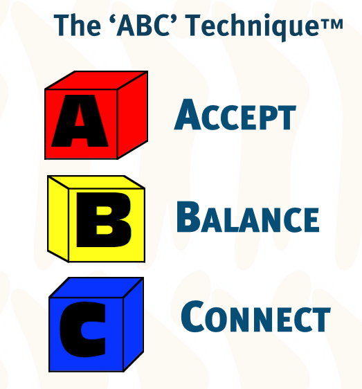 Like describing the fundamental particles of an atom, the Proton, Neutron and Electron – The A-B-C Technique, describes the three fundamental processes of Accept Balance and Connect that we must use to handle conflict effectively.